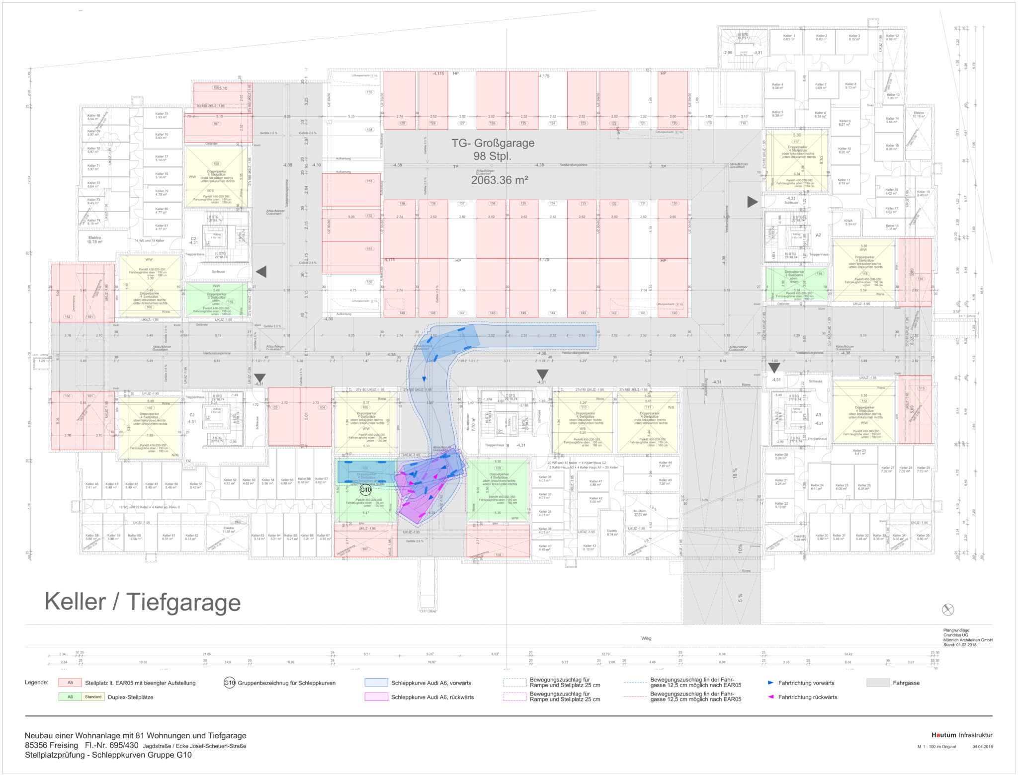 Für den Neubau einer Wohnanlage mit 81 Wohnungen und Tiefgarage in Freising erstellte unserer Büro eine Studie für die Tiefgarage.